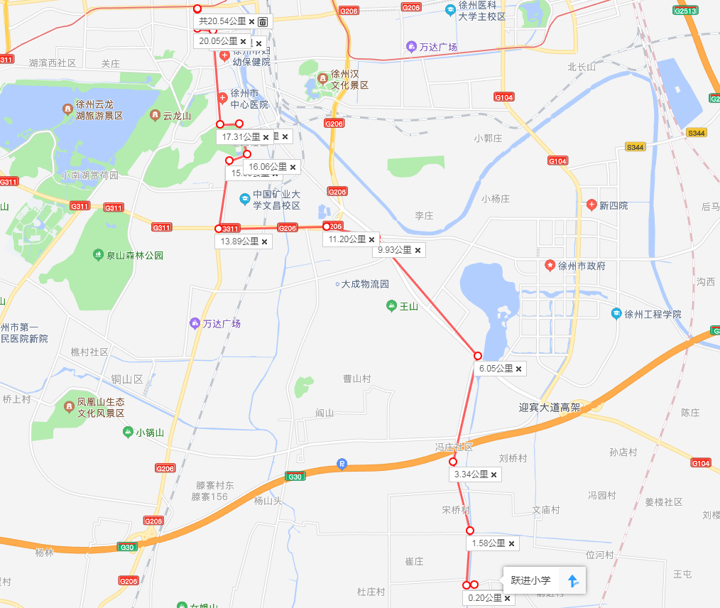 (1)線路走向:大彭鎮(zhèn)-G310-礦山路-工農(nóng)北路-淮海西路-淮海東路-彭城路-青年路-中山南路返回