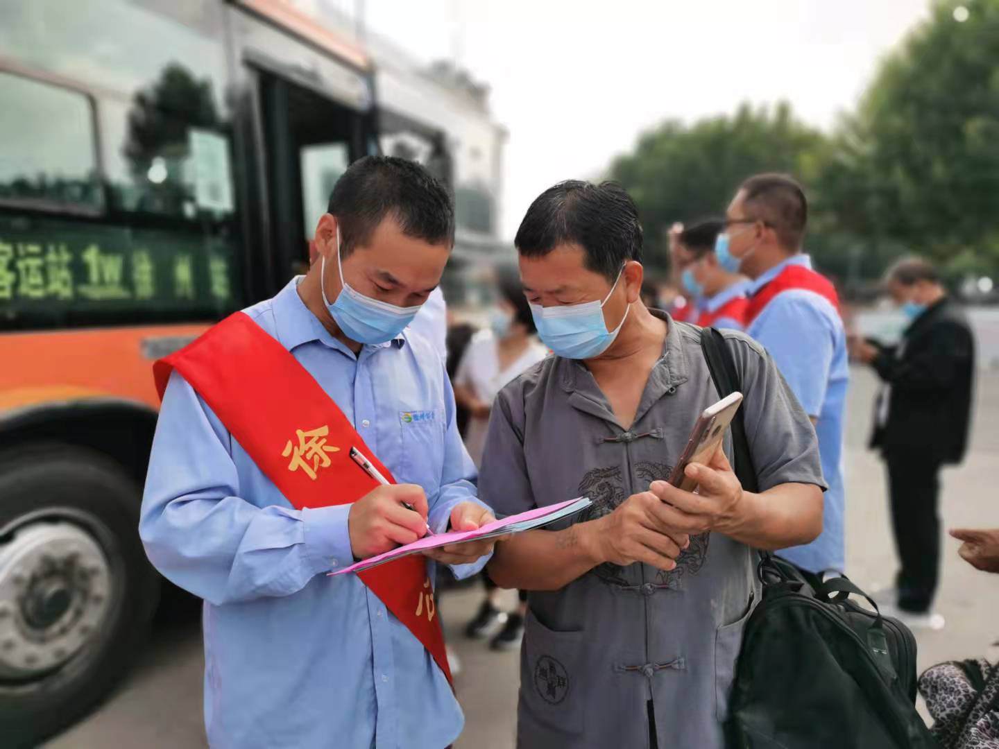 在活動現(xiàn)場,志愿者們積極行動,一邊引導車輛規(guī)范進站,一邊疏導乘客有序上下車,解答乘客提問,并幫助乘客調取“健康碼”及“行程碼”,方便市民乘車。