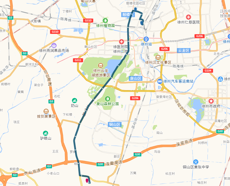 (2)沿途停靠站點(diǎn)(公交站臺(tái)):新建北村、電力醫(yī)院、祥和小區(qū)、馬場(chǎng)村(中山北路)、鼓樓區(qū)政府、后勤學(xué)院、礦大南湖校區(qū)、國(guó)基城邦、臺(tái)上草莓小鎮(zhèn)。