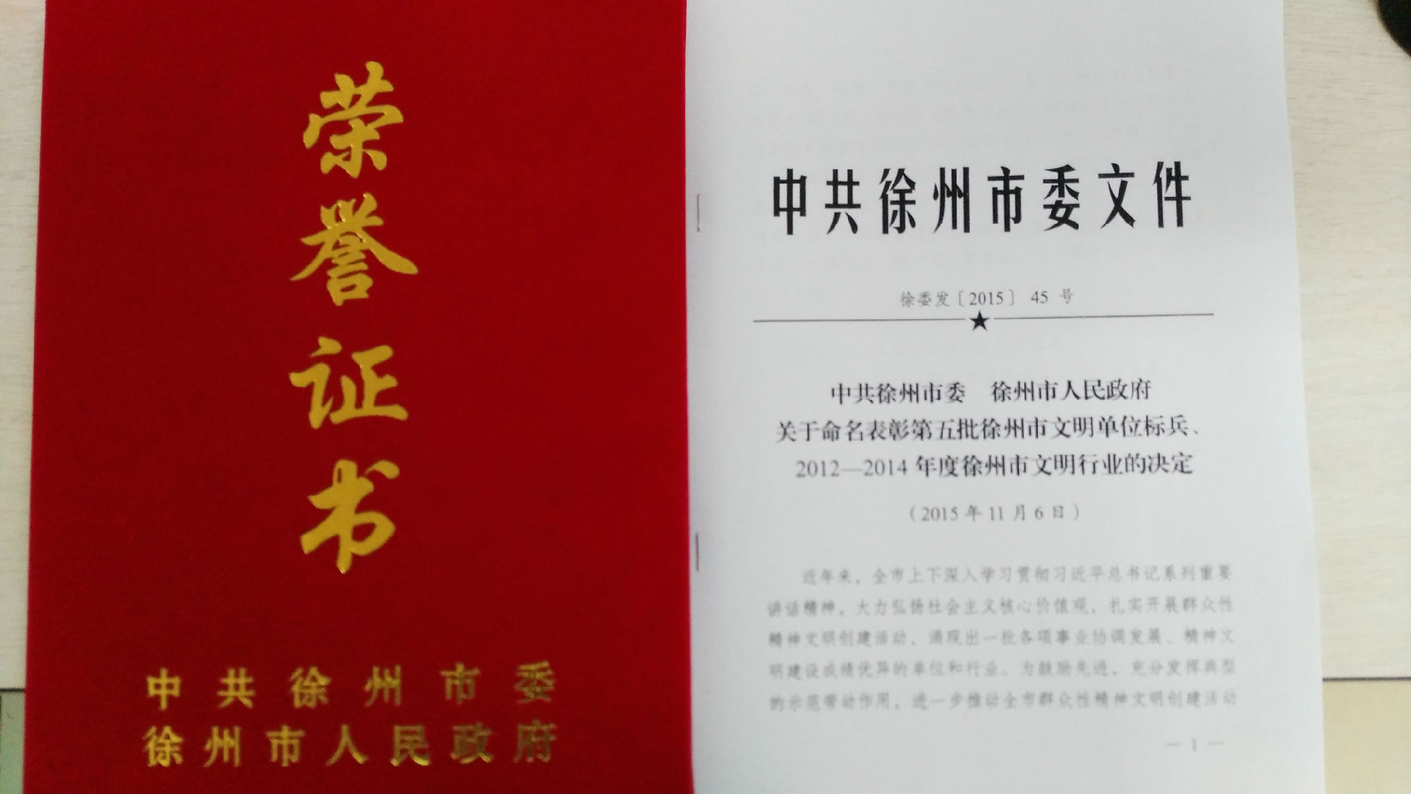 公司榮獲市2012-2014年度文明行業(yè)榮譽稱號