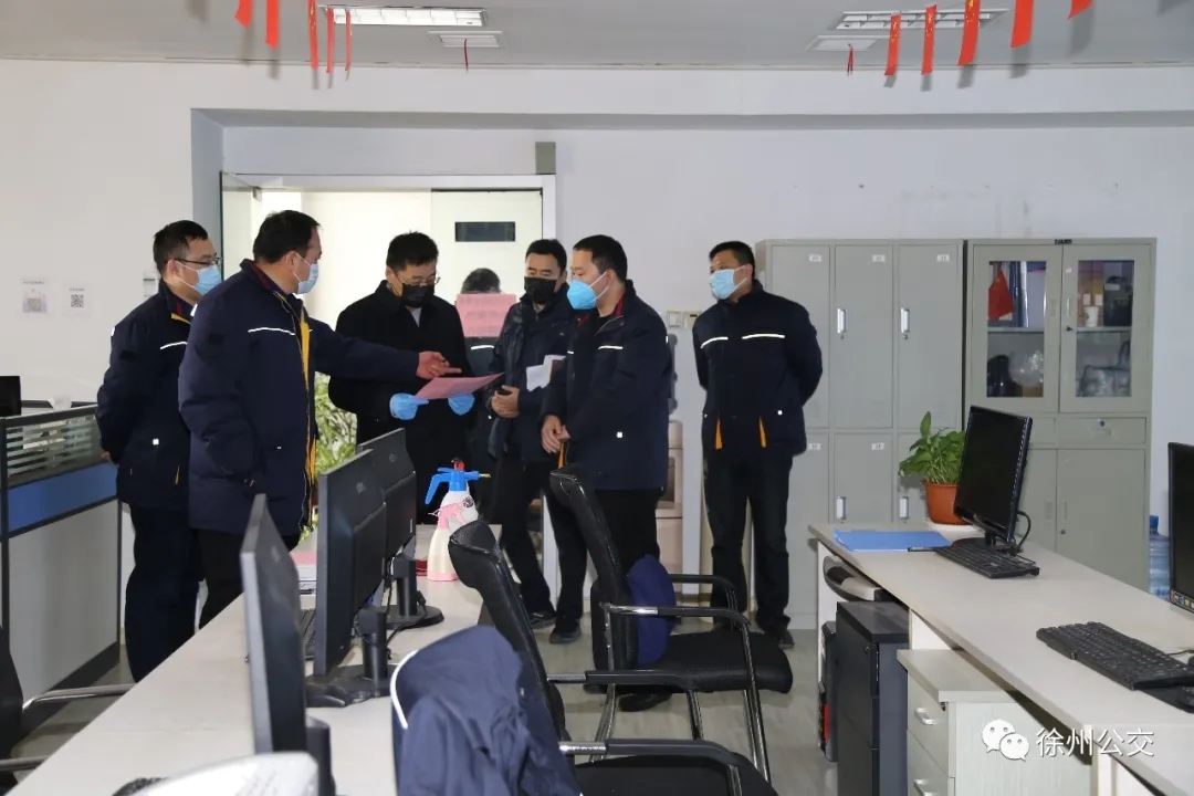 2月11日徐州市交控集團黨委書記、董事長賈泉涌到公交智能調度平臺查看復運前防控工作