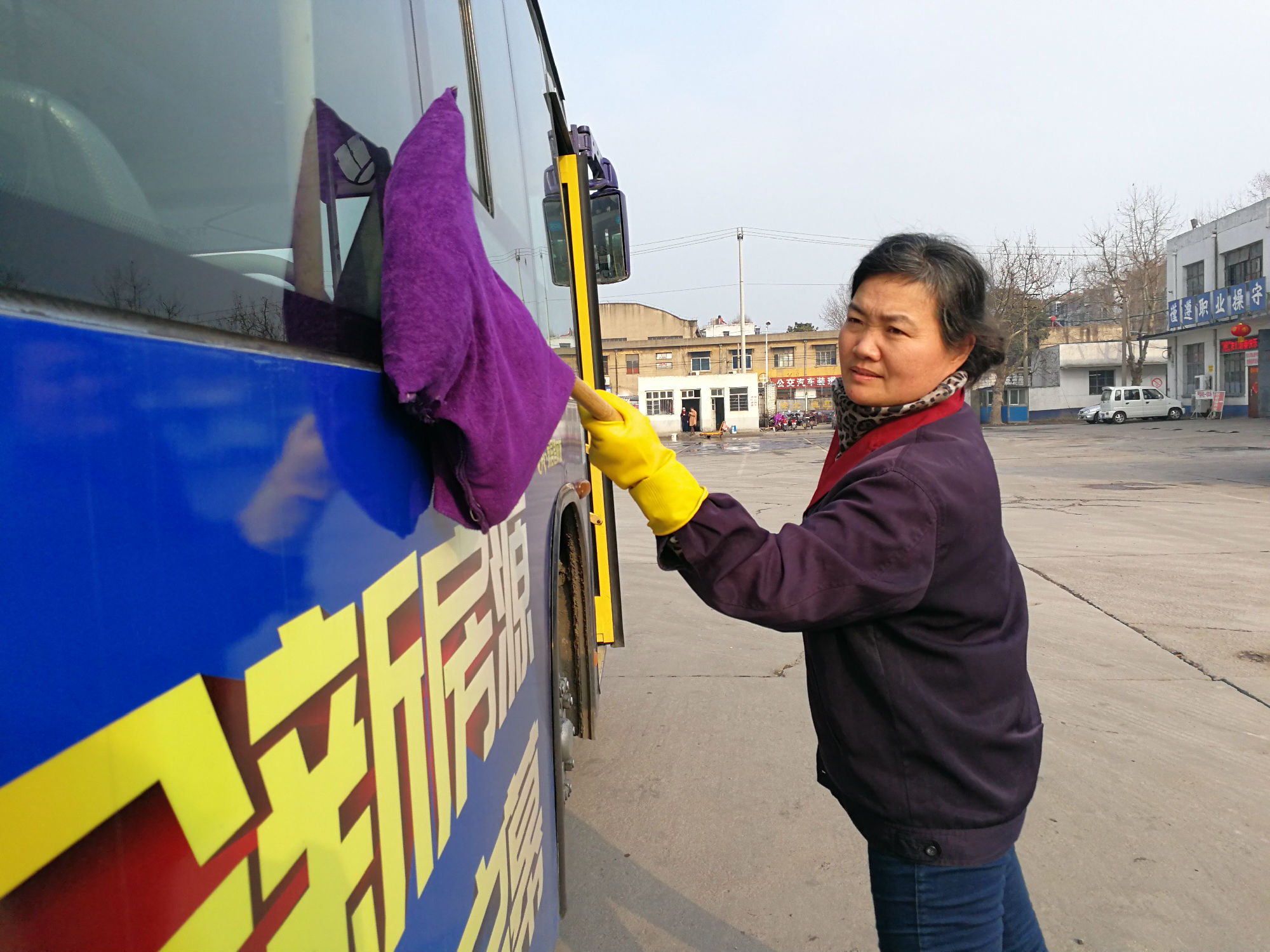 清晨5點(diǎn),74路保潔員韓黎明已經(jīng)來(lái)到韓山車場(chǎng),開始保潔車輛。由于氣溫較低,車場(chǎng)內(nèi)的水龍頭凍壞了,無(wú)法正常使用,她只好到遠(yuǎn)一點(diǎn)的地方,將水一桶桶的運(yùn)來(lái),開始細(xì)心地擦拭玻璃,車輛外圍,車內(nèi)座椅、內(nèi)圍板....不放過(guò)一處角落。冬天的水冰涼刺骨,清洗抹布的手凍得通紅,搓搓手、跺跺腳,她又賣力的干了起來(lái)。車窗玻璃上厚厚的霜十分難擦,加上道路上經(jīng)常遇到灑水車,跑完一圈回來(lái)車身又臟了,增加了車輛保潔難度。韓黎明不怕辛苦,任勞任怨,只要有臟的地方,她就再次清潔,確保出場(chǎng)的每輛車都干干凈凈。期間,她的衣服多次被汗水浸透,晾晾汗,又凍得發(fā)抖,韓黎明沒(méi)有抱怨,仍然堅(jiān)守完成自己的工作。