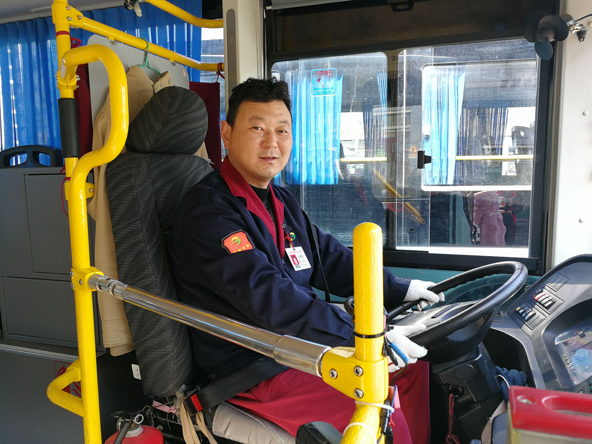 汽車南站,人流擁擠,專一線路的客流明顯增多,拎著大包小行李回家過(guò)年的外地乘客比例也明顯增加?!按蠹易⒁獍踩?,不要擁擠,請(qǐng)排隊(duì)乘車”。專一路四星級(jí)駕駛員王旭微笑著引導(dǎo)乘客乘車,在他的耐心疏導(dǎo)下,乘客們排隊(duì)上車、秩序井然。“車輛起步,請(qǐng)大家拉好扶手,保管好自己的行李物品”。車輛行駛至農(nóng)副產(chǎn)品市場(chǎng),一位70多歲的大媽拉著手推車準(zhǔn)備上車,王旭立即幫大媽把手推車搬到車上放好并鼓勵(lì)車內(nèi)乘客為老人讓座,安排好老人后,他才平穩(wěn)起步行車?!靶熘菡荆ㄋ{(lán)天)到了,請(qǐng)到火車站、汽車總站的乘客下車,拿好您的行李物品,祝您一路平安”!王旭細(xì)心地提醒乘客。“師傅,火車站怎么走?”一位外地乘客詢問(wèn),“下了車,您往前走,過(guò)兩個(gè)紅綠燈,您就看到火車站了。”王旭耐心地解答。行駛至終點(diǎn)站,王旭走到拿著重物的大媽身邊,微笑著說(shuō):“大媽,我來(lái)幫您拿下去吧,您慢點(diǎn)下車”,大媽十分感激,從包里拿出一個(gè)蘋果塞給王旭,說(shuō)道:“小伙子,你人真好,服務(wù)態(tài)度熱情,你一定要拿著這個(gè)蘋果,希望你新的一年平平安安?!蓖跣裥睦锱?,在他看來(lái),他只是做了自己該做的事情,卻收獲了乘客的溫暖祝福。