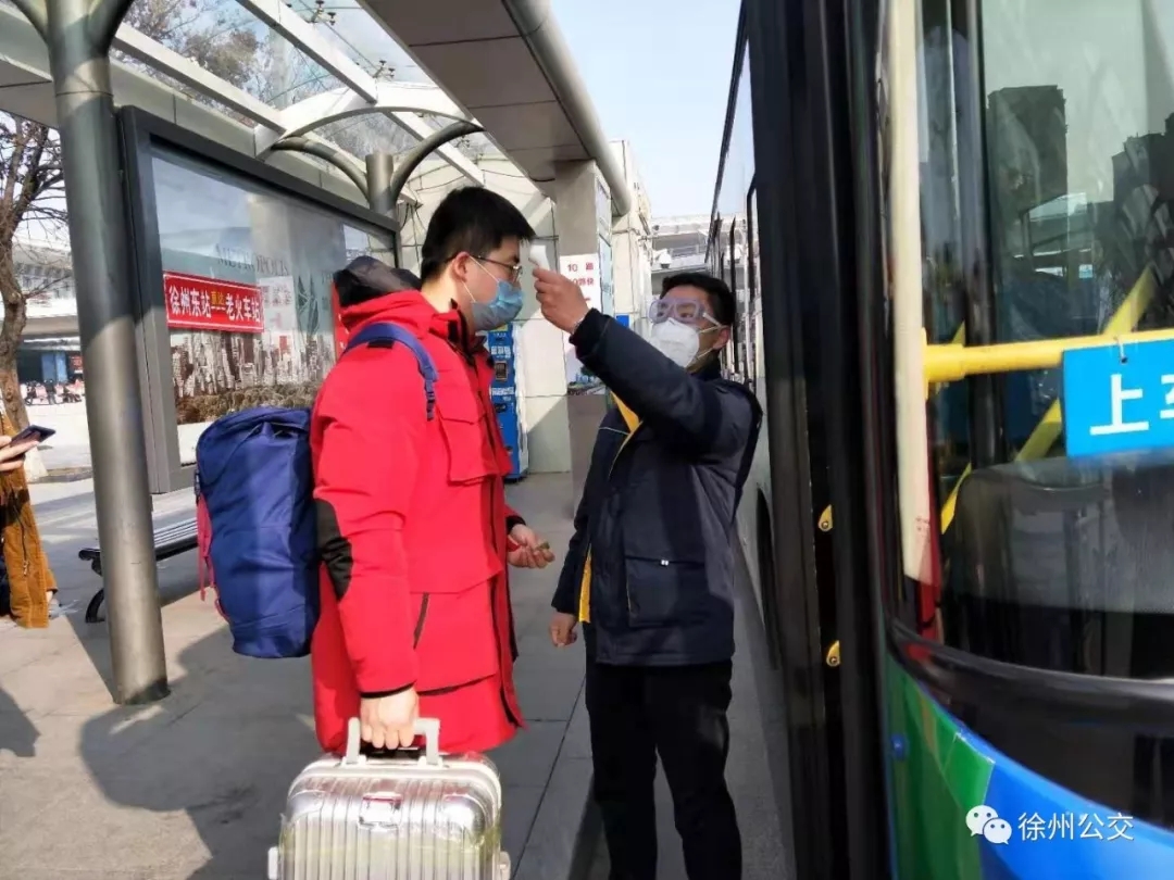 根據(jù)《徐州市新型冠狀病毒感染的肺炎疫情防控應(yīng)急指揮部通告(第1號(hào))》,從1月27日(農(nóng)歷初三)開(kāi)始,徐州全面暫停徐州市區(qū)城市公共交通(徐州東站至徐州站單向點(diǎn)對(duì)點(diǎn)接駁線(xiàn)路除外)和道路客運(yùn)班線(xiàn)、包車(chē)運(yùn)營(yíng)(機(jī)場(chǎng)定制客運(yùn)除外),徐州各縣(市、區(qū))也同時(shí)停止所有道路客運(yùn)班線(xiàn)運(yùn)營(yíng)。“這8輛車(chē)是目前市區(qū)內(nèi)唯一還在運(yùn)營(yíng)的公交線(xiàn)路了,雖然乘客不多,但我們依然要做到萬(wàn)無(wú)一失。”張經(jīng)理告訴記者,根據(jù)上級(jí)部門(mén)的要求,徐州公共交通集團(tuán)順通巴士公司在疫情防控期間每天每班配備8輛車(chē)(分上午、下午、夜班三個(gè)班次),40余名駕駛員輪崗,運(yùn)營(yíng)時(shí)間為6:00-24:00(每天直到夜里高鐵運(yùn)營(yíng)結(jié)束)。這8輛車(chē)的運(yùn)行路線(xiàn)為高鐵徐州東站——徐州火車(chē)站單程點(diǎn)對(duì)點(diǎn)接駁班車(chē)。每天服務(wù)乘客約500-600人次。為確保疫情防控,所有車(chē)輛堅(jiān)持做到每趟通風(fēng),1趟1消毒,并使用空氣消毒機(jī)進(jìn)行消毒。同時(shí),對(duì)所有上車(chē)乘客進(jìn)行體溫測(cè)量,嚴(yán)禁不戴口罩乘客上車(chē),并對(duì)當(dāng)班駕駛員每趟運(yùn)營(yíng)結(jié)束后都進(jìn)行體溫測(cè)量。
