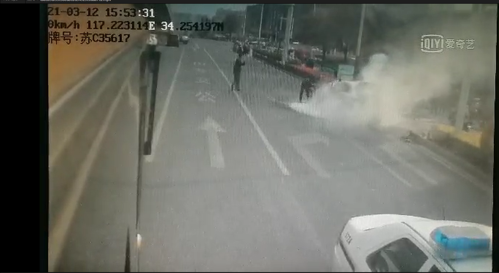 3月12日下午 ,52路駕駛員周星駕駛2180號車行駛至升輝裝飾城附近時(shí),發(fā)現(xiàn)前方一輛私家車著火,滾滾濃煙不斷冒出,情況十分危急。