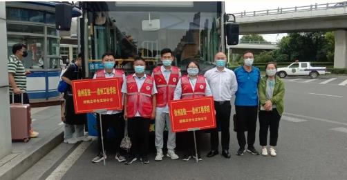 同時(shí),為了服務(wù)好學(xué)生返校,新城公司組織雷馳平安志愿者服務(wù)隊(duì)在徐州東站出口處集結(jié),隊(duì)員們高舉引導(dǎo)牌,迎接工程學(xué)院學(xué)子的到來(lái)?,F(xiàn)場(chǎng)幫助學(xué)生們提箱子拿行李,測(cè)體溫,查驗(yàn)“兩碼”,引導(dǎo)學(xué)生有序上車。并在車內(nèi)備有應(yīng)急藥箱、消毒濕巾、口罩、飲用水等物資,受到學(xué)生們的一致好評(píng)!
