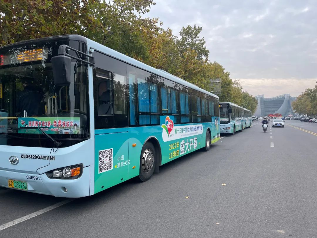 為做好第十三屆中國(徐州)國際園林博覽會舉辦期間的交通運(yùn)輸服務(wù)保障工作,徐州公交于11月6日開通了3條免費(fèi)的“園博園公交專線”。開通首日,園博園免費(fèi)接駁線路運(yùn)營28臺車輛,共計(jì)發(fā)送72個(gè)班次,運(yùn)送乘客2860多人次。