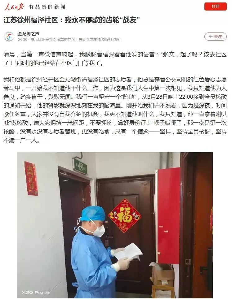 《人民日?qǐng)?bào)》平臺(tái)發(fā)布文章《江蘇徐州福澤社區(qū):我永不停歇的齒輪“戰(zhàn)友 ”