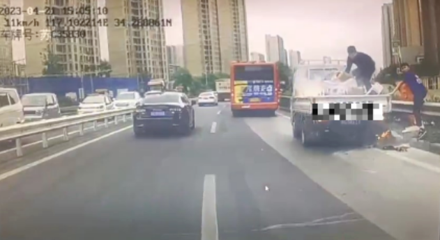 4月21日中午,608路4名駕駛員石守軍、孫晉旭、郝科軍、郝允明駕駛著他們各自的車(chē)輛前往火花加氣站進(jìn)行加注燃料,就在返回的途中,忽然看到前方路邊白煙滾滾,當(dāng)距離再靠近一點(diǎn)時(shí)才發(fā)現(xiàn)竟然是一輛小型貨車(chē)車(chē)廂著火產(chǎn)生的陣陣煙霧,且已經(jīng)有幾個(gè)箱子開(kāi)始接連燃燒,小貨車(chē)駕駛員手里只有一瓶礦泉水,面對(duì)火勢(shì)即將控制不住,這僅有的一瓶水無(wú)疑是杯水車(chē)薪,無(wú)奈之下,貨車(chē)司機(jī)只能慢慢地將著火的紙箱搬下車(chē)廂。