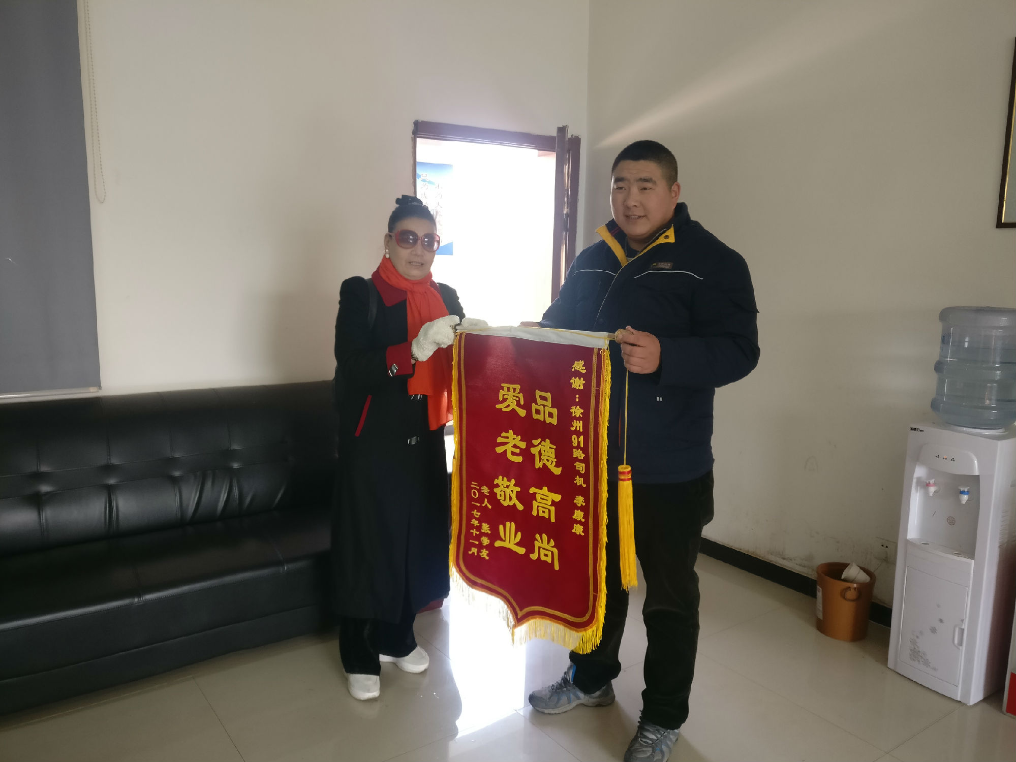 11月21日,李康康正執(zhí)行末班車的任務,夜晚寒冷,車上乘客也比較少。即將到達終點站時,車上僅剩一位年近70的張女士,李康康看她神情慌張地看著窗外。經(jīng)詢問,得知張女士剛搬到新城區(qū)住不久,迷路了。考慮到張女士年齡較大,于是就把想送張女士回家的想法向線路長及公司做出了匯報。經(jīng)批準后,他開車將張女士送回了家。事后,張女士為了表達謝意,給李康康送來一面錦旗。