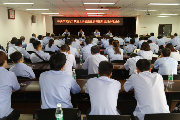 5月30日下午,公司隆重召開了“徐州公交員工事跡上央視通報(bào)表彰暨星級(jí)服務(wù)工作推進(jìn)會(huì)”,對(duì)近30多天來受到市以上新聞媒體,包括被央視宣傳報(bào)道的救助病人、照顧老人、見義勇為、優(yōu)質(zhì)服務(wù)的優(yōu)秀員工進(jìn)行了集中表彰獎(jiǎng)勵(lì),公司董事長(zhǎng)、總經(jīng)理杜紅軍,工會(huì)主席竇同銀,調(diào)研員祖伯鴻及各單位分管領(lǐng)導(dǎo)、服務(wù)主管、政工員、先進(jìn)典型等一線員工代表82人參加會(huì)議。