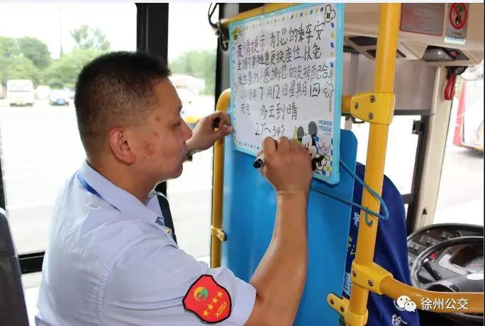 原來他已養(yǎng)成了習(xí)慣,在他的駕駛室后方掛著一塊白板,寫著乘車的溫馨提示語和天氣情況。每天他都會記錄下當(dāng)天的天氣情況:“為了您的乘車安全,請不要隨意更換座位。感謝您的支持!2018年7月12日星期四,多云到晴,27~34攝氏度”,“特別是老年人、孩子,開車時(shí)換位子太危險(xiǎn)了?!毖λ山忉尩馈?/span>