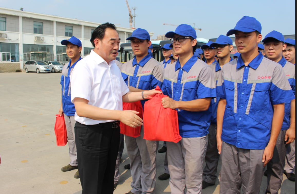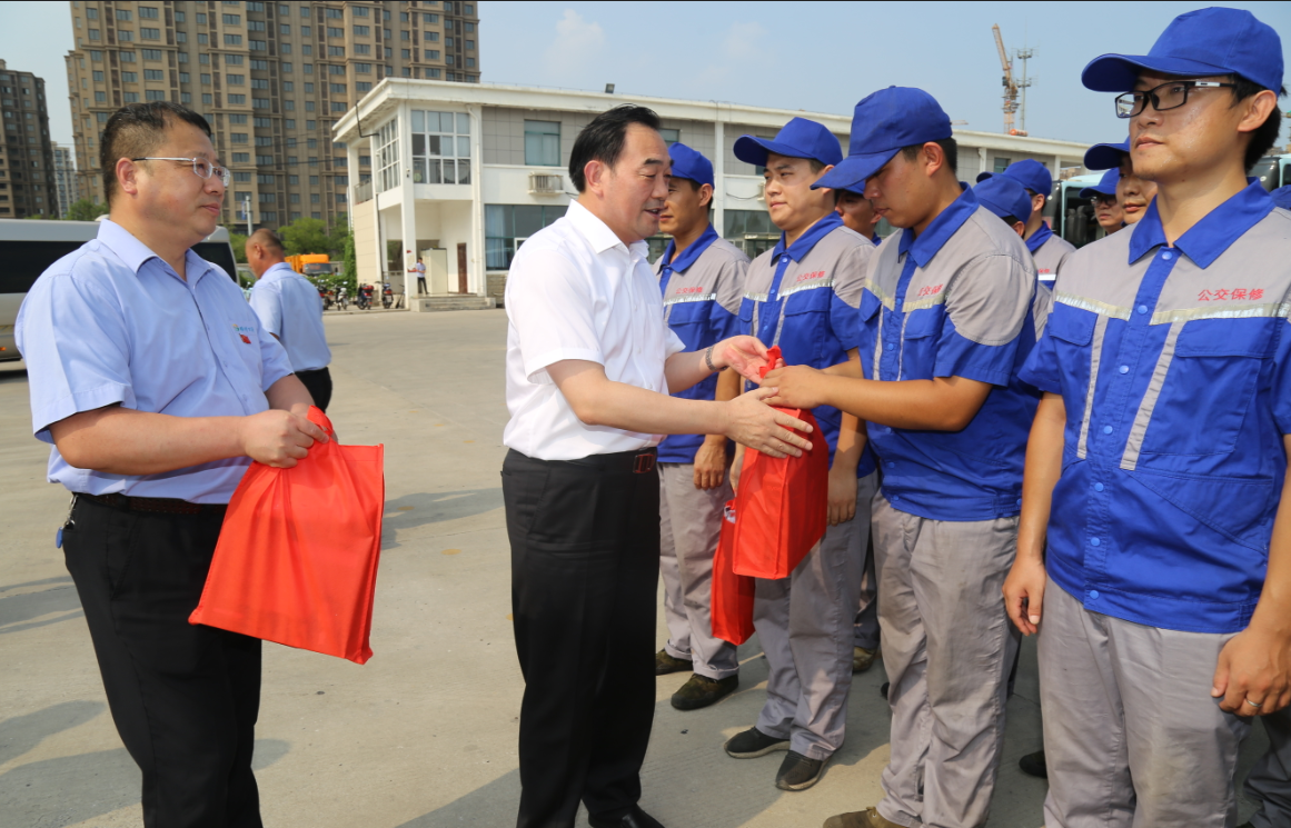 在烈日下的公交郭莊停車場,周鐵根書記看到堅守崗位的公交員工們汗流浹背,親切地上前與公交駕駛員、修理人員等一線員工一一握手?!按蠹倚量嗔耍「兄x你們!”他對廣大公交員工為保障全市人民高溫天氣正常出行所付出的辛勤勞動表示充分肯定,又將洗發(fā)水、毛巾、肥皂等降暑物品,以及《安全生產(chǎn)知識職工普及讀本》等書一一送到公交員工手中,叮囑有關(guān)負責人,要多愛護、關(guān)心一線職工,切實做好防暑降溫措施,為公交員工創(chuàng)造好的工作條件,切實維護廣大職工的安康權(quán)益,確保高溫天里職工的身體健康和安全生產(chǎn),讓職工安全度夏、清涼度夏,真正感受到黨和政府的關(guān)懷、工會組織的關(guān)心和社會各界的關(guān)愛。他還關(guān)心地叮囑公交員工們要勞逸結(jié)合,做好高溫防護,保重身體,杜絕疲勞駕駛,確保安全行車,并希望大家更好地堅守崗位、服務(wù)群眾,為保障市民安全有序的出行環(huán)境,打造我市優(yōu)化營商環(huán)境、營造文明城市良好氛圍做出更大的貢獻。